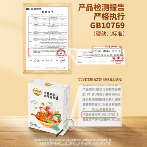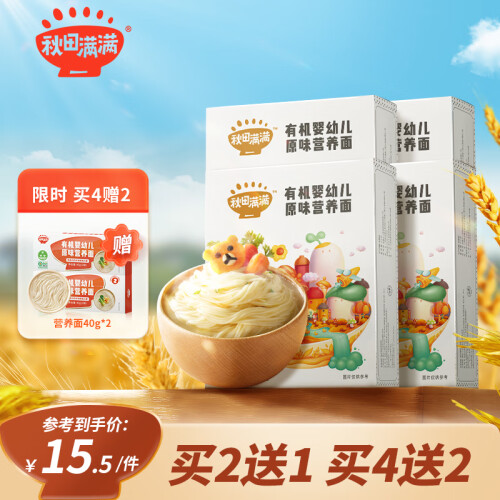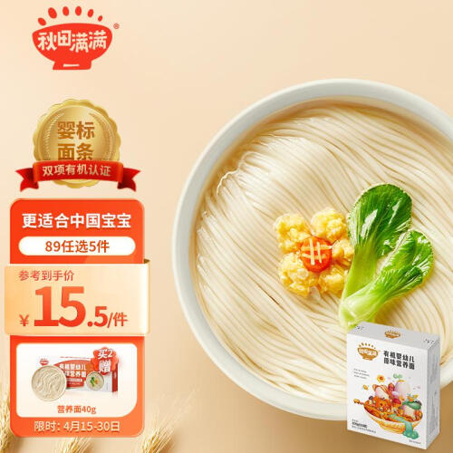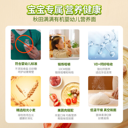 这款秋田满满 婴儿有机营养面 200g,选用新疆有机小麦,不实用化肥和农药,执行国家标准,不添加食用盐,易煮好吞咽。精心调配50余次配方,结合中国宝宝现状,开发4段式喂养,看成分,除了宝宝发育必须营养素,我们甄选蔬菜和肉类融入面条,组合搭配多种口味,选你所需,看背书,婴标和全线有机并不是所有,辅食面条都具备,但秋田满满有。