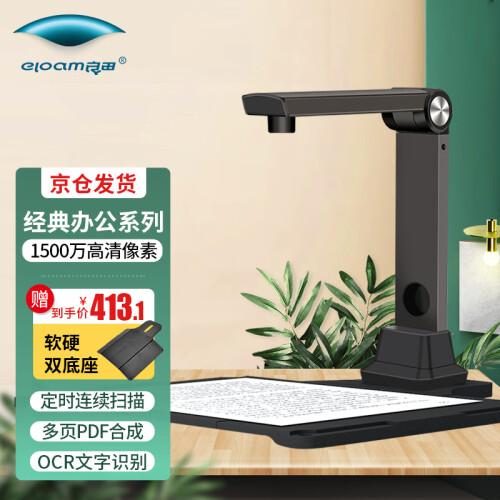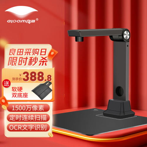 eloam 良田 S1262 高拍仪 1200万像素 A4幅面,这款高拍仪的最大分辨率为4000*3000,扫描幅面为A4,采用定焦对焦方式。扫描速度小于1秒,智能防过曝。一键扫描多种文件格式(word,Excel,txt,pdf)。