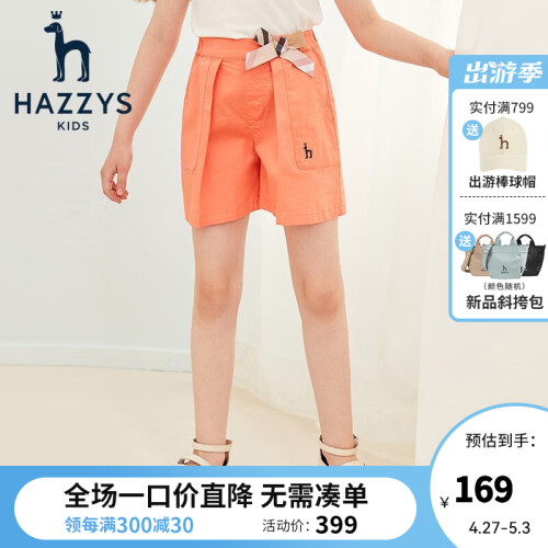 当前的位置: 首页 > 今日值得买 > HAZZYS哈吉斯品牌童装女童短裤夏季新品中大童宽松简约复古休闲裤 浅橙色 105cm