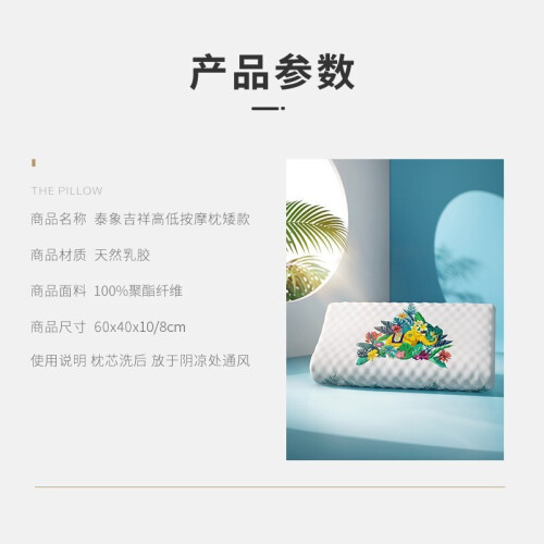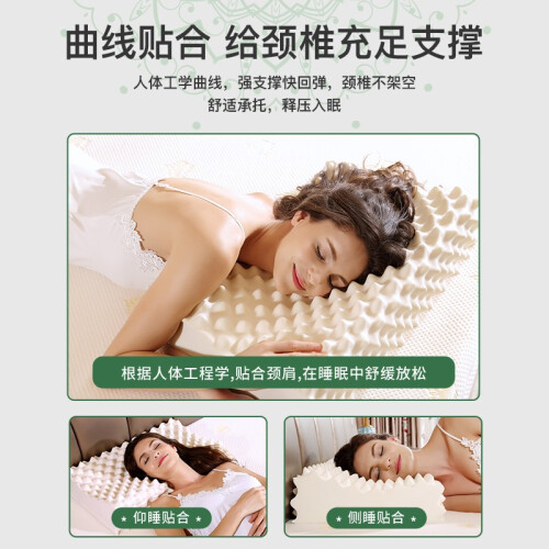 TAIHI 泰嗨是泰国乳胶寝具品牌,旗下产品包括乳胶枕、乳胶床垫的系列。是亚洲少数几个通过“国际睡眠产品协会(ISPA)、ECO、LGA、SGS多重认证的天然乳胶品牌。 此款乳胶枕选用泰国天然乳胶,抑菌防螨,蜂窝状结构,具有良好的透气性,散发人体产生的热量,排除余热和湿气,保持空气流通,使用更健康。依据人体工程学设计,贴合颈椎曲线,释放颈椎压力,放松头部神经。高低2cm差弧度设计,满足不同睡姿人群需求。尺寸:59*39*9/11cm。