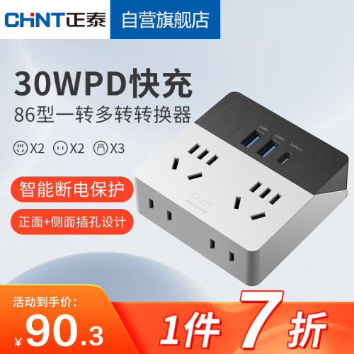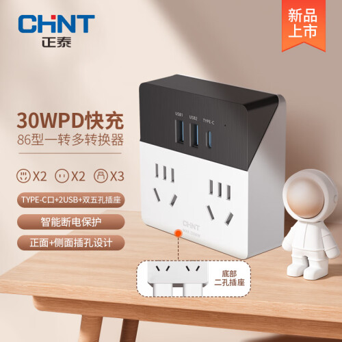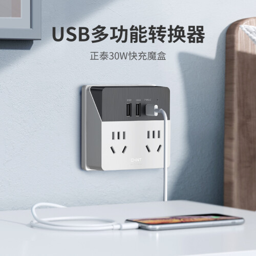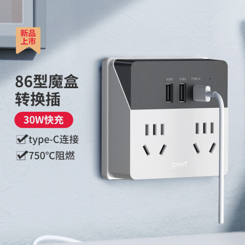 小魔盒大能量,USB多功能转换器,正泰30W快充魔盒充电不等待。激光拉丝雕刻十细磨砂表面处理工艺,防刮擦划痕,黑白配色,潮流出众。多种设备一个就够,1个Type-C和2个USB-A插口,2个扁五孔,底部2个隐藏两孔。