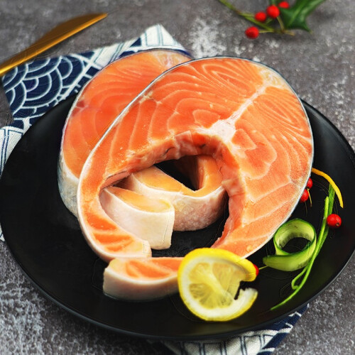 大西洋鲑,俗称“三文鱼”。原始栖息地为大西洋北部,即北美东北部、欧洲的斯堪的那维亚半岛沿岸,营养价值高的世界性养殖鱼类。此款三文鱼可烤、可煎,都非常美味,规格:300g 2-3块。