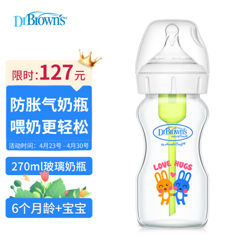 Dr Brown's 布朗博士 婴儿奶瓶 选用加厚玻璃安全材质,减少吐奶,宽口径容易清洗。奶嘴波纹排气设计,自然柔软,柔韧耐用。
