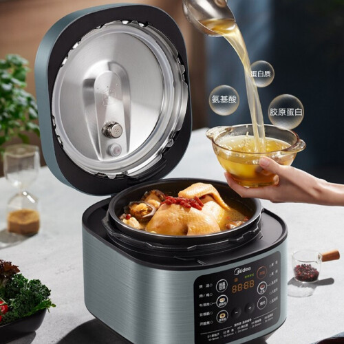 55℃恒温激发蛋白酶活性,促进蛋白质水解成氨基酸析出,通过巧鲜阀进行微小、间断的排气 产生无数细小气泡将食材腥味物质排出。