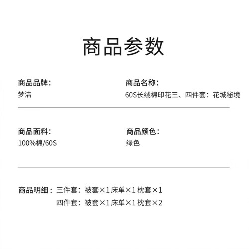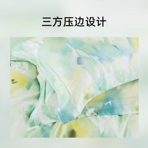 枕套,三方压边设计,简约不硌脖颈。圆角床单不拖地,视觉柔和更耐脏。梦洁家纺定制拉链头,品质拉链经久耐用。多点定位绑带设计,固定被芯避免滑移。