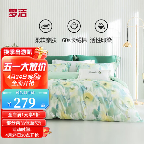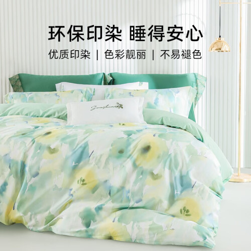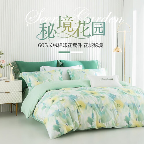 100%纯棉,高标准60s优质棉花。品质优良,纤维柔长,丝滑质感,富有光泽,呈现棉质面料的更高境界。印染方式更环保、更健康,营造更健康舒适的家居环境。双面可盖,被里被外都是你的小小花园。