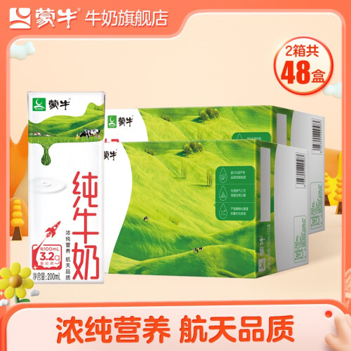 蒙牛 纯牛奶营养早餐奶整箱纯奶整箱苗条装 200ml×24盒*2箱