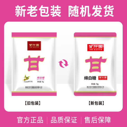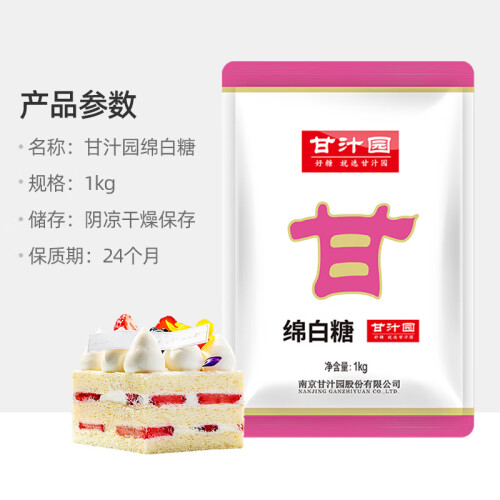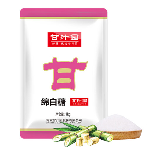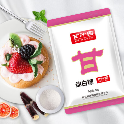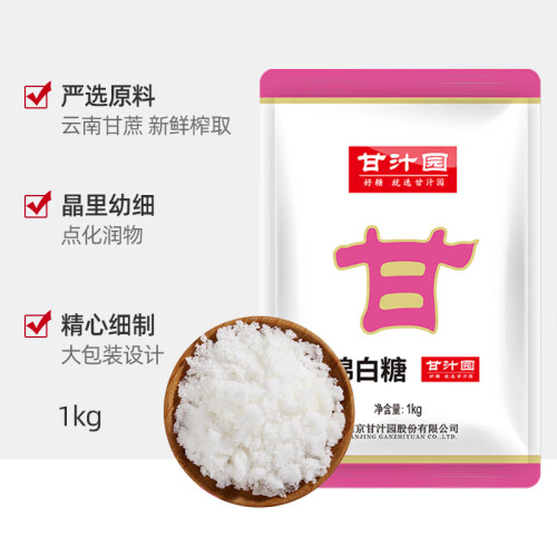 甘汁园绵白糖,颗粒均匀易溶解,细腻,色泽洁白明亮,口感甜腻,纯度高易储存,超值2斤装,居家必备。规格:1kg。
