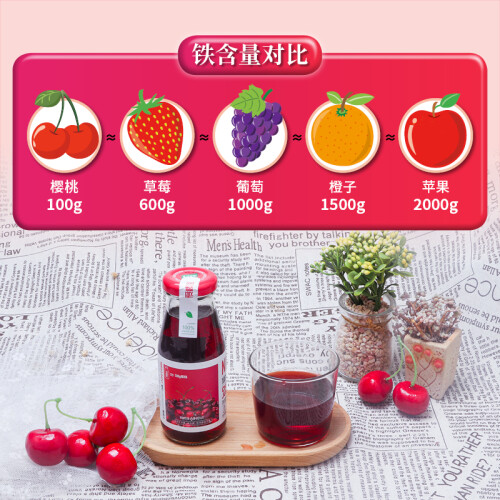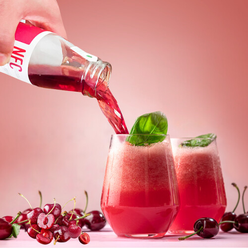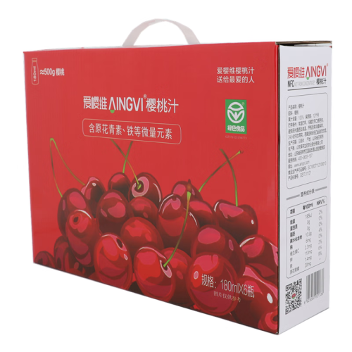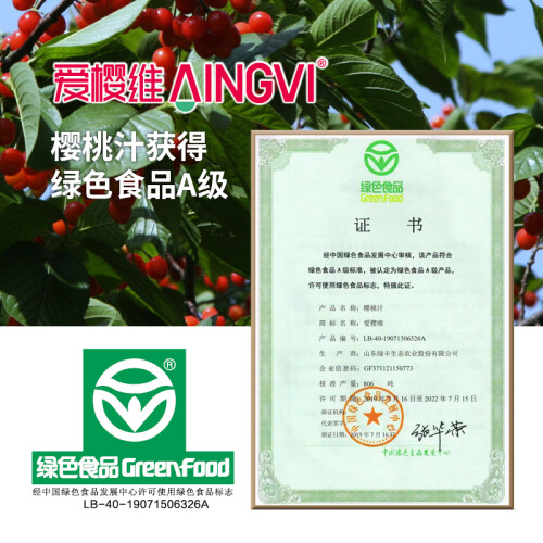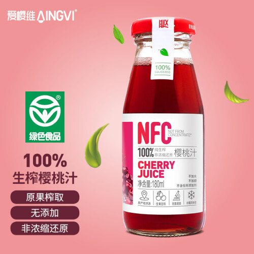 NFC是英文Not From Concentratel的缩写,中文称为“非浓缩还原汁”,是将新鲜原果清洗后压榨出果汁,经瞬间杀菌后直接灌装(不经过浓缩及复原),完全保留了水果原有的新鲜风味。万亩樱桃种植基地,从源头保障产品原料的优异品质,100%原生态生榨果汁,五莲山地处北纬35.7度,70%森林覆盖,天然樱桃汁的绿色家园,独有PH6.5酸性棕壤。
