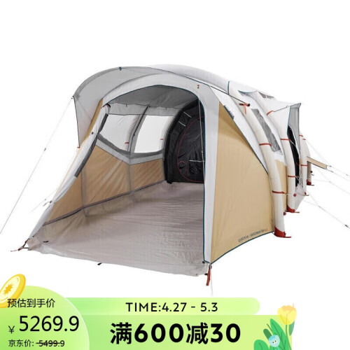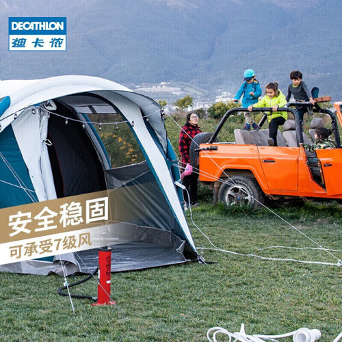 DECATHLON 迪卡侬 户外充气帐篷 4018211 6人-3室1厅,三窗两门通风良好,视野良好,通风性强,减少凝露产生。门窗和尾部通风口防蚊纱网避免蚊虫侵扰。超大空间搭建简单快速,账内成年人也可自由站立。