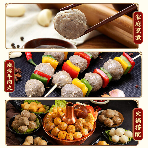 牛肉丸是潮汕地区著名的地方小吃,它以柔、润、鲜、爽而驰名。其制作技艺源自2000多年的官廷菜肴“捣珍”,这种制作技艺在潮汕地区流传已有数百年的历史。规格:250g