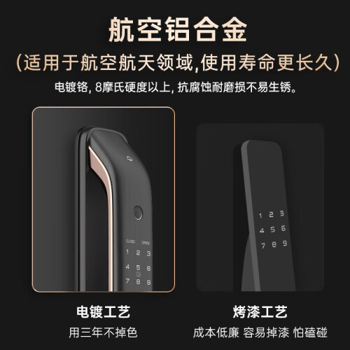 凯迪仕K20-W 全自动智能锁采用一体弧面流线型外观设计,高颜值,有太空灰、红古铜经典两色可选,适配多种风格。采用航空铝材质面板,IML外部工艺防护表层,耐磨防刮花,长久使用保持如新。
