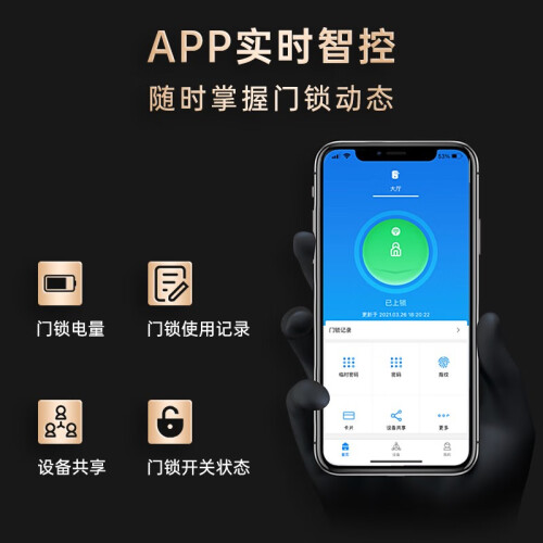 联接手机App,即可实时掌握门锁动态,及时检测门锁状态、开锁提醒、试错报警、门锁异常报警等,第一时间保护家庭的安全。采用C级锁芯,有效防止技术开锁。内置ARM新一代 ORTEX-M4芯片,速度升级,运算更快,开/关锁更快,APP消息推送更快。