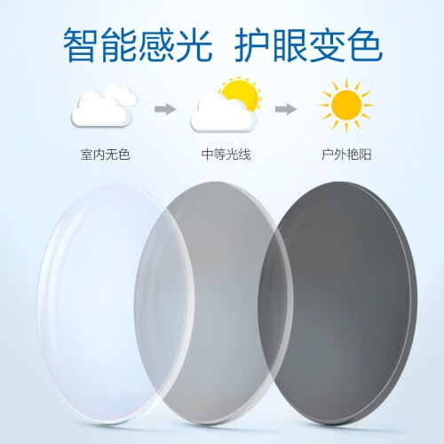 采用先进的旋涂技术工艺,变色速度快且均匀,使您快速切换场景,免去换镜烦恼,让视学享受变行如此简单。镜片前表面金属元素防蓝光硬膜高硬度膜层,有效阻隔电磁伤害电脑护目功效,中间层智能变色智能变色因子户外迅速变色,吸引蓝光,后表面减少疲劳防蓝光隔绝有害蓝光,一镜三用,可代替近视镜片、变色镜片、电脑护目镜片使用;