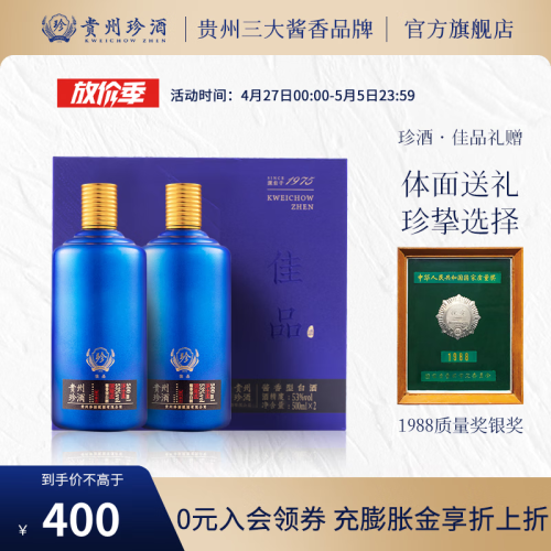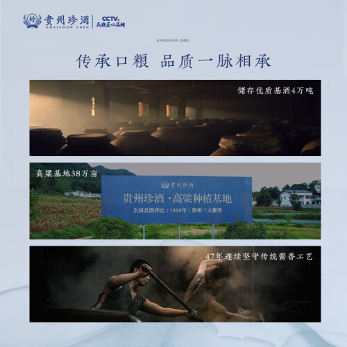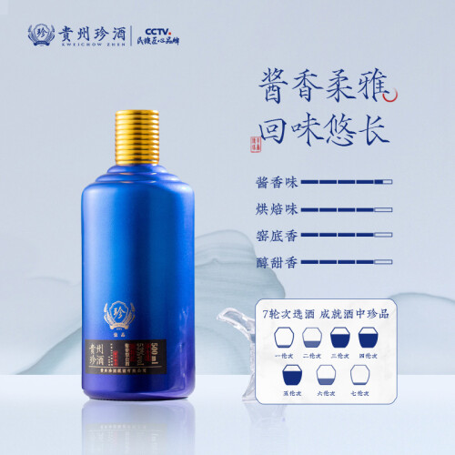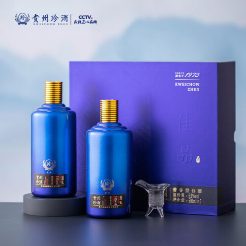 珍酒佳品是贵州珍酒酿酒有限公司出产的一款定位中端的酱香型白酒。 珍酒号称“异地茅台”,创立于1975年,采用贵州茅台传统酱香型白酒酿造工艺,拥有着贵州茅台酒相似的口感和酒质, 1989年获评国家质量奖优质奖(银奖) ,荣获中国酒文化名酒称号。 珍酒 佳品于2021年12月上市,在遵义本地科学实验车间原址,以红缨子糯高粱为原料,采用紫砂石老窖池,遵循12987传统酱酒工艺精心酿制。入口甘甜爽口。瓶身磨砂肌理,经典螺纹旋拧瓶盖,浮雕金花纸装饰。精美大气,适合送礼。