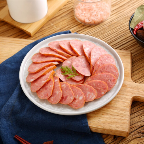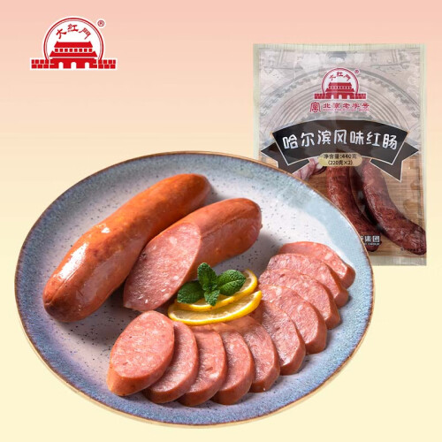 哈尔滨的红肠可谓声名远播,除了秋林里道斯、哈肉联这种响当当的品牌,其他品牌也都有制作。大红门此款红肠除了有新鲜猪前腿肉,还添加了乌拉圭进口牛肉,外皮酥脆,口感醇厚,规格440g,保质期50天。