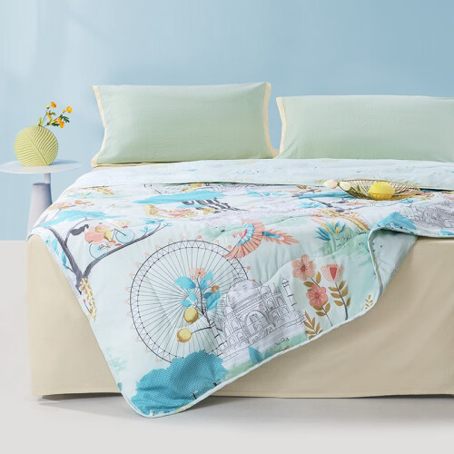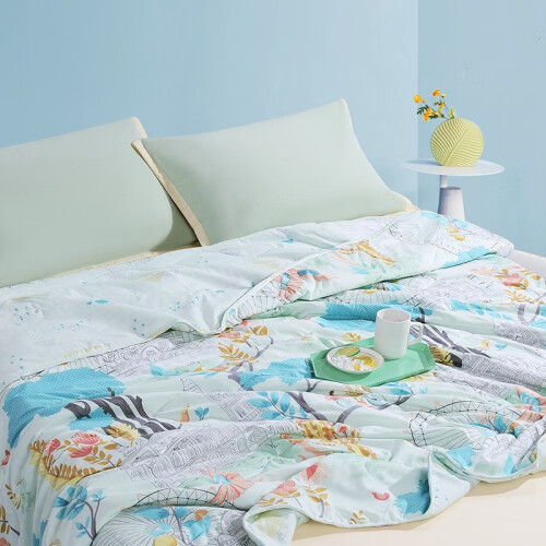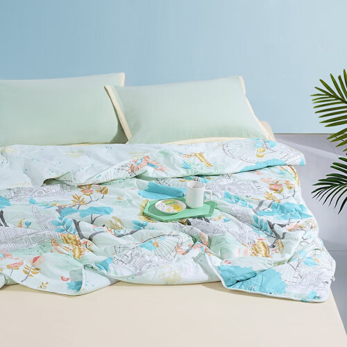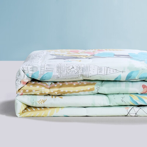 被芯采用七孔纤维填充,内部呈多孔中空结构,快速的把多余水汽排出, 散热透气,带来清爽的睡眠体验。整张纤维填充,多次水洗不易结团变形,延长夏被使用寿命。面料经磨毛工艺处理,触感软糯顺滑, 尽享裸肤舒适睡眠体验。
