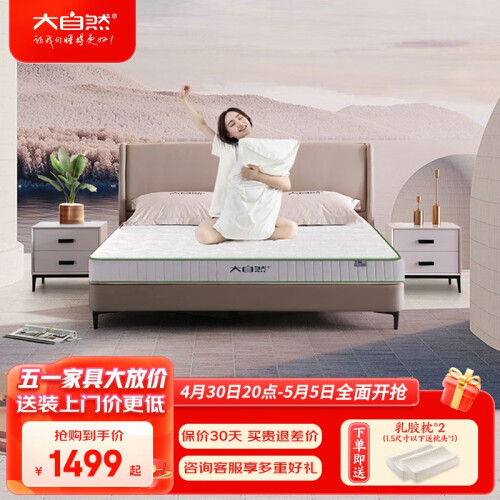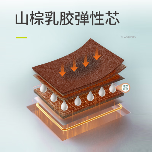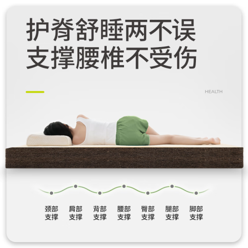 这款大自然山棕床垫,内芯采用全山棕打造,可以很好的呵护脊椎。整张床垫无弹簧,完全用植物纤维三维网状结构实现支撑力,拒绝电磁辐射。原料来自云贵高原自然生长8年以上的山棕丝,用植物的力量均衡承托;每平方米超过52000个透气孔,可以迅速排出热量和水汽,透气排汗,提供舒爽好睡眠。无弹簧结构,睡眠安静无噪音。经过10万次滚压测试,达到大于95%的回弹性能,数万受力感应点,充分贴合身体曲线。面料采用竹纤维防螨材质,搭配亲肤仿丝棉絮片+静音无纺布,触感舒适。