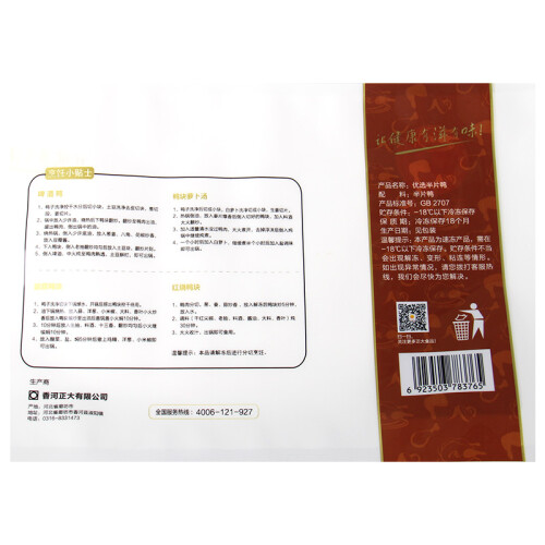 正大食品半片鸭,源自正大全产业链放心品质。从农场到餐桌,看得见的品质,全产业链安心放心。好粮好水,养成一身精华。腥味低,植物蛋白喂养,严格把控,全程科学喂养。规格:1.4kg。