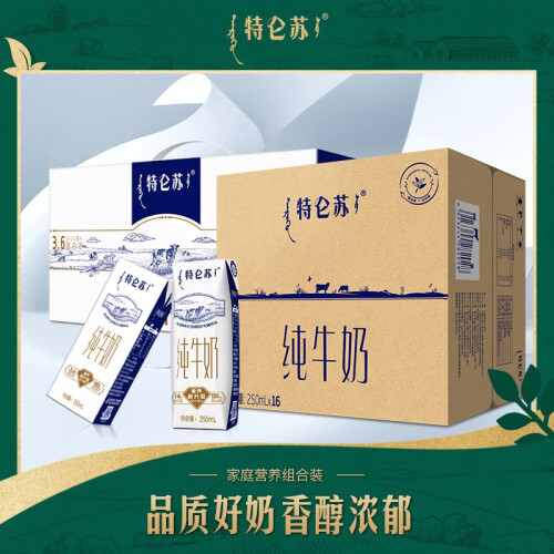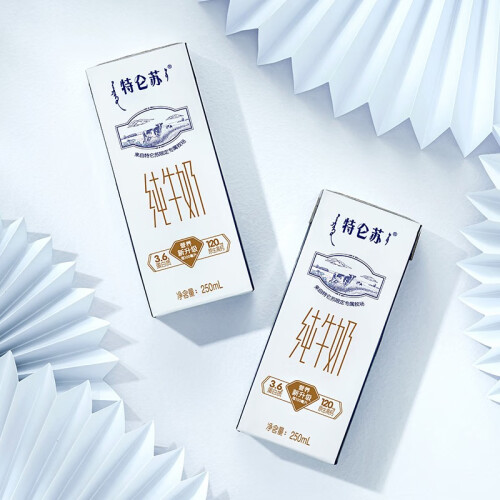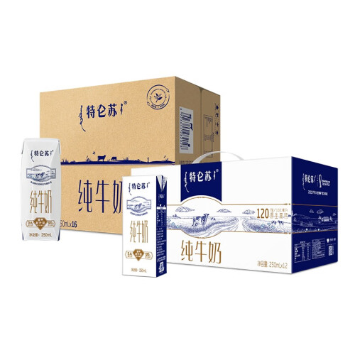 蒙牛是蒙牛集团旗下主力品牌,于1999年成立,总部位于中国内蒙。蒙牛品牌主打液体奶、冰激凌和其他乳制品等产品。特仑苏牛奶是蒙牛旗下的高端牛奶品牌,其奶源来北纬40°黄金奶源维度带特仑苏专属牧场。采用生牛乳配方,天然无添加,口感香醇可口,奶味浓郁。每100ml牛奶中含有3.6g蛋白质,以及120mg原生高钙。一般无添加纯牛奶的蛋白质含量在3.0-3.2左右,3.6g的蛋白质含量的天然纯牛奶市面上一般很少见。规格:纯牛奶250mL*16包+纯牛奶250mL*12包。