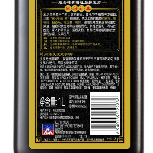 霸王(BAWANG)推出的这款洗发液,内含首乌、侧柏叶、黑芝麻、桐叶等成分,改善脱发现象,修护受损伤发质,为秀发补充所需营养物质,调理和滋润头皮,强化发根,令头发乌黑浓密、顺滑亮泽。产品质地轻润,泡沫绵密,并带有草本清香。适用于枯黄、易掉发质。