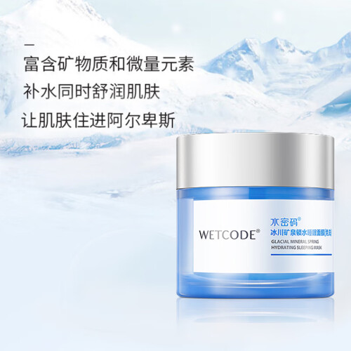 夜间8小时补水、锁水,让肌肤一整夜喝足水分。 采用独特配方溶入冰川矿泉精华,夜间源源不断地补水,让疲惫的肌肤在轻轻松松的睡眠中喝水,使肌肤告别倦怠暗哑,恢复光泽。 强力锁水,持久保湿——在肌肤表面形成亲肤「锁水网」,帮助肌肤锁住水分,恢复肌肤弹性及紧致饱满。 富含氨基酸、滋养修护,清晨起床肌肤光彩重生,水感透白。