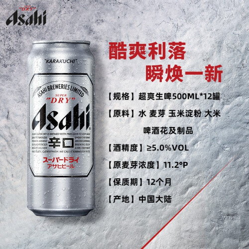 这款超爽就是朝日最有名的一款啤酒,优选大麦芽、啤酒花以及天然水源,生产中营造出一种无菌的环境,杜绝杂菌的污染,从而保证了酵母的纯种发酵,产出的啤酒具有最纯正的口感和风味,最适合冰镇后饮用。规格:500ml*18罐。