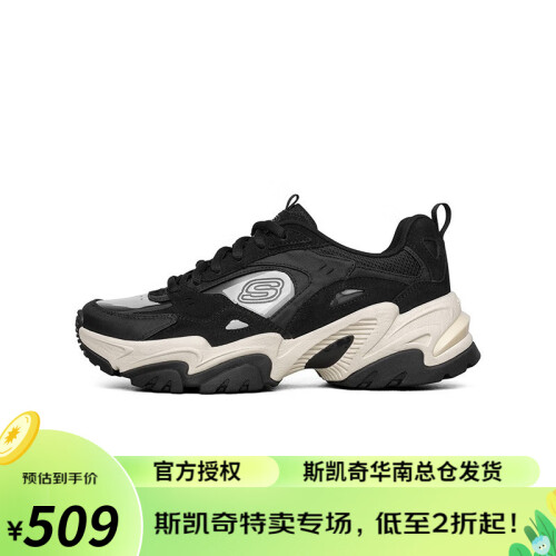 Skechers斯凯奇Reality to idea联名女老爹鞋,前卫型格,复古新潮,反毛皮多层次拼接,质感出众,融入透明PVC材质叠加鞋面,塑造全新机能风老爹鞋,玩转复古新潮流。