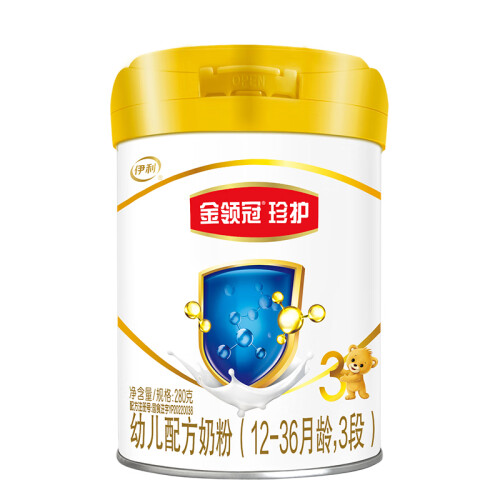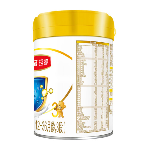 伊利是知名的国产奶粉企业,旗下的奶粉产品线比较丰富,金领冠是其人气和销量都占据前列的品牌,有金领冠睿护、珍护、菁护等系列,这款金领冠珍护以中国母乳为黄金标准,添加乳源二代OPO,OPO含量提升1.8倍,能够减少脂肪酸在肠道中与钙结合,形成难以吸收的造化钙,避免脂肪酸和钙的双重流失,添加α+β专利蛋白,促进营养吸收,帮助宝宝提高自护力,还特别添加双重益生元,可以促进宝宝肠道健康,专利核苷酸组合能起到调节肠道功能维持良好状态的作用,给宝宝强大保护力,DHA、ARA和胆碱,有助于宝宝脑部发育,提高记忆力。
