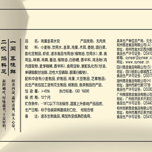 思念素水饺手工制作,甄选优质食材,伴以诱人时蔬,方便快捷,安全美味,清新不油腻。皮薄馅多,颗颗饱满。吃一口,韭菜的鲜香混着鸡蛋的香味,不仅管饱还美味。规格:1kg。