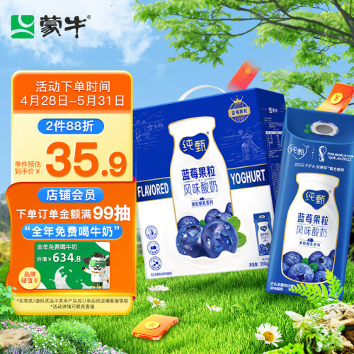 蒙牛是蒙牛集团旗下主力品牌,于1999年成立,总部位于中国内蒙。蒙牛品牌主打液体奶、冰激凌和其他乳制品等产品。蒙牛旗下有特仑苏、未来星、焕轻、优益C、冠益乳、酸酸乳及纯甄等品牌。蒙牛纯甄百香果芒果酸牛奶精选上等奶源,口感纯正,严选原产地印度芒果、云南百香果,不添加香精、防腐剂、色素,天然美味,营养健康。规格:200g*10 盒。