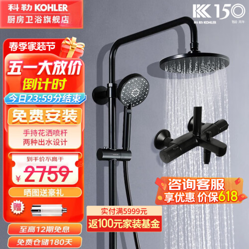 KOHLER 科勒作为全球消费者最熟悉的卫浴品牌之一,是由约翰 · 麦克· 科勒 (John Michael Kohler)1873年创建的。从进入卫浴制造业,陆续开发出整体铸造的搪瓷浴缸,脸盆和厨盆开始,科勒产品的设计日趋向艺术化和精品方向迈进。此款K-28654T-9-2BL恒温花洒套装,采用进口石蜡阀芯,冷、热水压发生变化时,石蜡阀芯可以瞬间响应,最快在0.2秒内稳定水温,保证0.4"C的最小水 温波动。水温超过50C时,自动限流,可防止老人孩子误操作被烫伤。黄金出水孔分布,舒适水流体验。亲氧水流科技,淋浴体感更舒适。