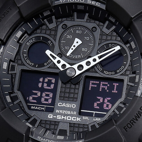 G-SHOCK是卡西欧最受欢迎的腕表系列,究其原因除了便宜耐操外,各种独特的外观设计深受潮流人士青睐。比如今天推荐的这款GA-100,延续了之前经典的DW6900表盘上方三眼风格,但又进化为立体3D结构,这样的指针及表盘设计有极浓的重型机械感。