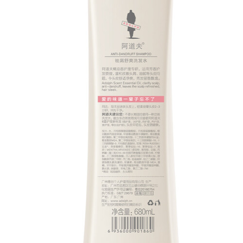 阿道夫,是广州阿道夫个人护理用品有限公司旗下品牌,创立于2006年,总部位于广东广州。目前阿道夫品牌包含有精油洗护专研、茶麸保养洗护专研、人参自然修护专研、生姜育发防脱专研及男士洗护专研等多个产品系列,为追求健康的爱美人士提供专业有效的匠心洗护产品。这款ADOLPH 祛屑舒爽洗发水 能够深度清洁,有效控油去屑,令头皮轻松无负担。
