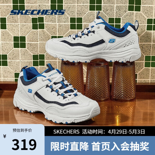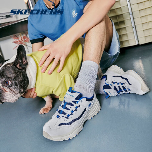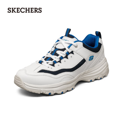 SKECHERS 斯凯奇 8790092 男士网面老爹鞋,经典熊猫,潮流廓形,沿袭经典款鞋面再创新意,以人造皮革和透气网布拼接而成,块状跳色增添层次感,整体风格细膩而富有张力。