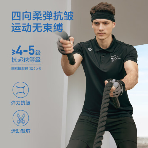 1秒瞬吸身体高效清爽,定制面料通过增加纤维的比表面积,提高毛细芯吸速度,加速汗水排散,让身体时刻保持干爽与体面。专属清爽面料,绵软透气为运动而生。面料通过优化纺织结构,注入氨纶弹力丝,任何方向伸展自如,下班随时打卡健身房。