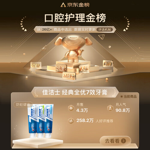 佳洁士健康专家全优7效牙膏,在佳洁士产品系列中算是较高端的一款。可抑制牙菌斑的形成,从根本上预防多种口腔问题有效抑菌,防止牙龈处细菌堆积,减少牙龈发炎、红肿等问题。抑制牙菌斑形成,从源头减少牙石生成,帮助减少牙石。抑制引起口气的细菌,使口气清新。屏蔽游离的钙,化学性去除外源性色素,洁白牙齿。