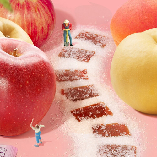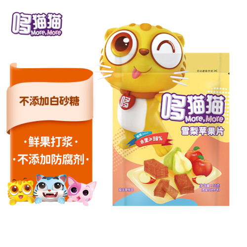 产地精选,山西红富士苹果,烟台雪梨,泰安水蜜桃,简单工艺不添加,水果自身纤维成型;拒绝白砂糖,不添加白砂糖,用海藻糖代替;配料只有水果、海藻糖,其它没了;独立镀铝小包装,一袋一片,吃水果很简单,味微甜,刚刚好,适合宝贝。