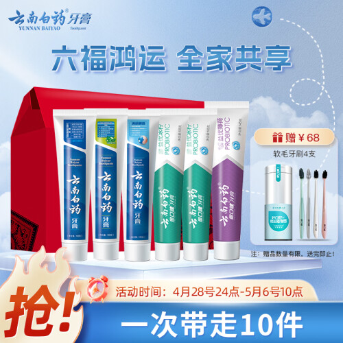 云南白药牙膏,含有特有的药物活性成分,能促进牙龈血液循环,长期使用可以防止牙龈出血,预防牙周炎、牙龈萎缩等口腔疾病。此套装包含牙膏共7支。