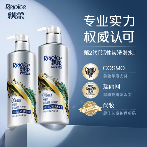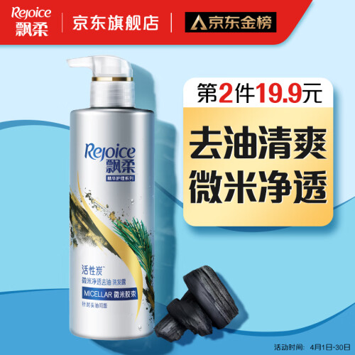 这款Rejoice飘柔活性炭洗发水含有活性炭成分,可以吸附头皮上的灰尘污垢,从而抑制头屑产生,乳灰色的膏体,有着清新的柑橘果香,闻起来就让人心情愉悦。微米卸妆科技,温和清洁,不损伤头发,发丝清爽。