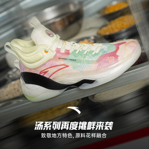 搭载安踏氮科技中底,针对篮球运动进行专业调校,赋予你源源不断动能供应,持续带来高能实战感受,轻质回弹。异形碳板,碳板长度增至140mm,尼龙侧墙,兼具刚性与韧性,符合运动生物力学包裹,侧墙刚性提供强力支撑,提升整鞋稳定性。后跟镶嵌SMART智能分子吸震科技,吸收每次落地的冲击力,减轻膝盖受力,吸收冲击后材料变硬,提供后跟支撑。采用流体防弹材料,冲击量吸收率高达95.4%。TPU纱飞织鞋面,轻韧舒适支撑包裹,为实战提供保护与舒适,在激流中迅速出击。大底纹路灵感来源于不同形态的水纹,细节处HHH代表。全鞋以白色作为主调,领口泡棉采用一抹绿色点缀如同书法作品中,纯白宣纸轻飘一缕笔墨。