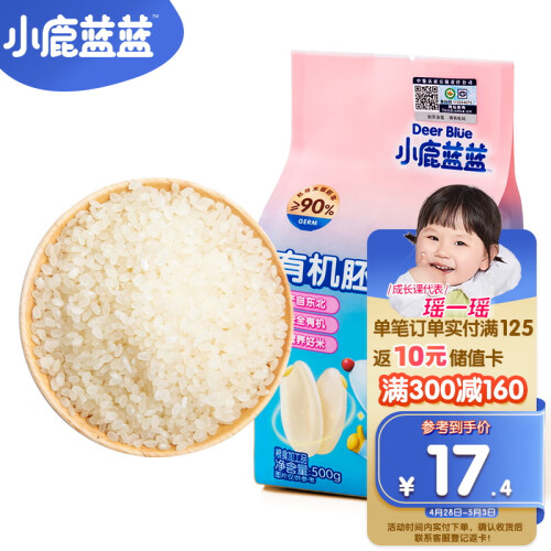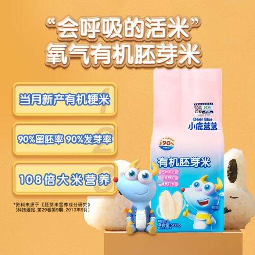 Deer Blue 小鹿蓝蓝 婴儿有机胚芽米 500g,秋田小町优质粳米,黑龙江沃土所产,当月鲜产胚芽米,现磨现发,产区直供,口感细腻,绵烂软滑。