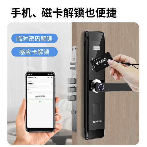 全钢锁体,C级锁芯,手机远程,霸王锁体,支持指纹,刷卡,密码开锁,微信生成零时密码,客人到访以及家政服务无需等待。半导体指纹,自动检测活体指纹,假指纹无效。指纹验证后下压把手开门,关门上提把手反锁,出门更安心,开关门更安静,深夜回家也不打扰家人休息。