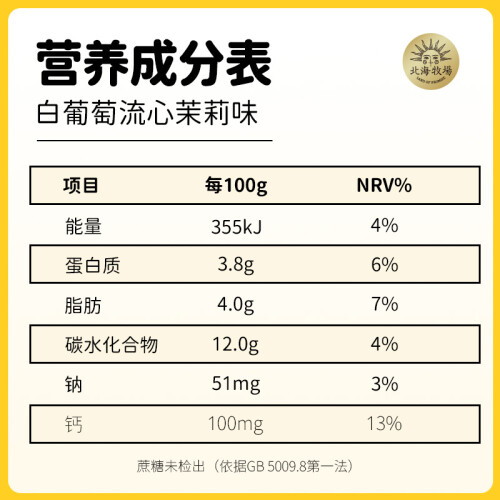 北海牧场(北京)乳品有限公司旗下乳品品牌,于2018年成立。北海牧场提倡用食材的自然力量,创造无负担的美味,选用自然的食材为消费者带来味蕾与身心的双满足。北海牧场宝石碗系列,白葡萄流心茉莉味,白葡萄流心茉莉味,清新茉莉奶香,饱满葡萄果肉,每100g能量为355KJ、碳水化合物12g、蛋白质3.8g、钙100mg,两款甜味主要来源于赤藓糖醇和甜菊糖苷。2℃-6℃冷藏,保质期21天。