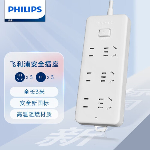 当前的位置: 首页 > 今日值得买 > 飞利浦(PHILIPS) 新国标安全插座/插排/插线板/拖线板/大孔间距 儿童保护门 总控6位组合孔3米