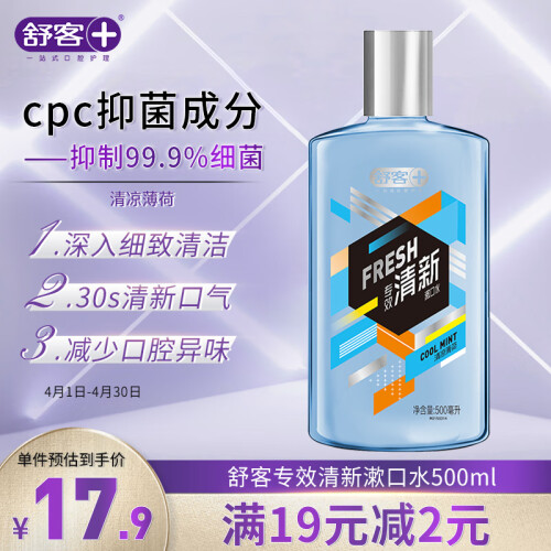 舒客(Saky)是广州薇美姿个人护理用品有限公司旗下口腔护理品牌,成立于2006年,其产品包括成人牙膏,成人牙刷,儿童牙膏,口腔护理工具等。这款Saky 舒客 专业清新漱口水,含有快速吸附异味因子,可去除口腔异味,保持口气清新。同时还可抑制口腔细菌,强健牙龈,保持口腔清洁。