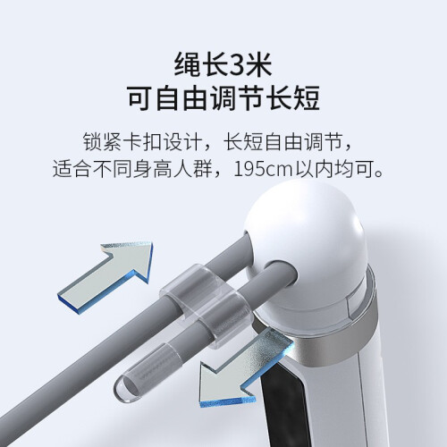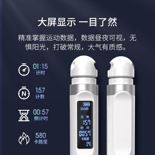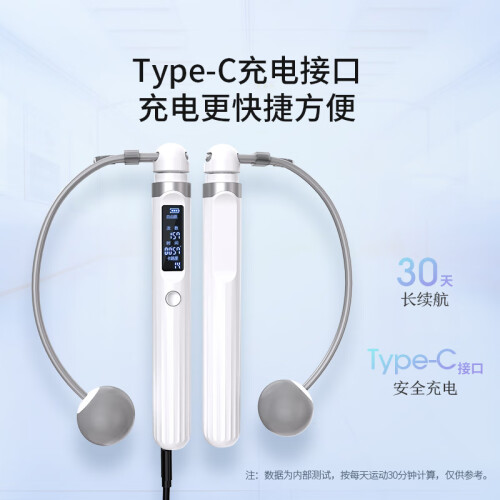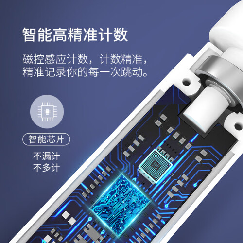 京东京造 悦动智能跳绳 JZWSTS-006,磁控感应计数,高灵敏感应,精准记录你的每一次跳动。360°精钢轴承,旋转顺畅无阻;三种模式设计,自由跳模式、倒计时模式、倒计数模式任你选,ABS磨砂防滑手柄,符合人体工程学,防滑纹理设计,每次轻触,握感舒适,易于持握。