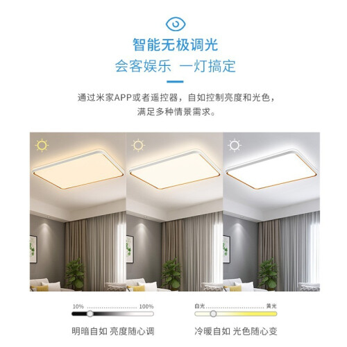APP远程控光,不限距离的便捷。还可提前预设光景,温馨待你归家。通过米家APP,设定日出/日落时间,灯会根据时间自动开启、关闭。日出唤醒和日落开灯,模拟自然光色。采用优质LED芯片,明亮舒适,如自然光般细腻柔和。