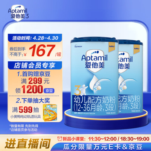 Aptamil爱他美奶粉是德国专业婴幼儿营养品开发销售公司美乐宝Milupa Group集团旗下品牌,为欧洲销量最好也是近两年海淘热门奶粉之一。这款Aptamil爱他美奶粉,特有的亲源配方,含有饱和脂肪酸,支持宝宝脑部及视力发育,低聚半乳糖、多聚果糖scGOS/icFOS搭配铁和锌,有助于增强宝宝的抵抗力,另含有维生素C和D促进宝宝对铁和钙的吸收,满足宝宝的营养需求。