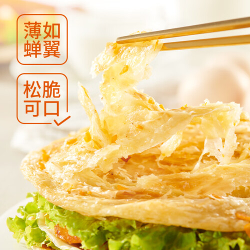 手抓饼是从葱抓饼演变而来,新鲜出炉后的手抓饼,千层百叠,层如薄纸,用手抓之,面丝千连,其外层金黄酥脆,内层柔软白嫩。规格:25片装 共2125g。